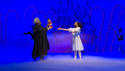 Soon after, the nutcracker is transformed into a handsome prince who travels with Clara through the “Land of Snow” to the “Kingdom of Sweets.” Once there, they meet colorful, dreamlike characters from around the world.