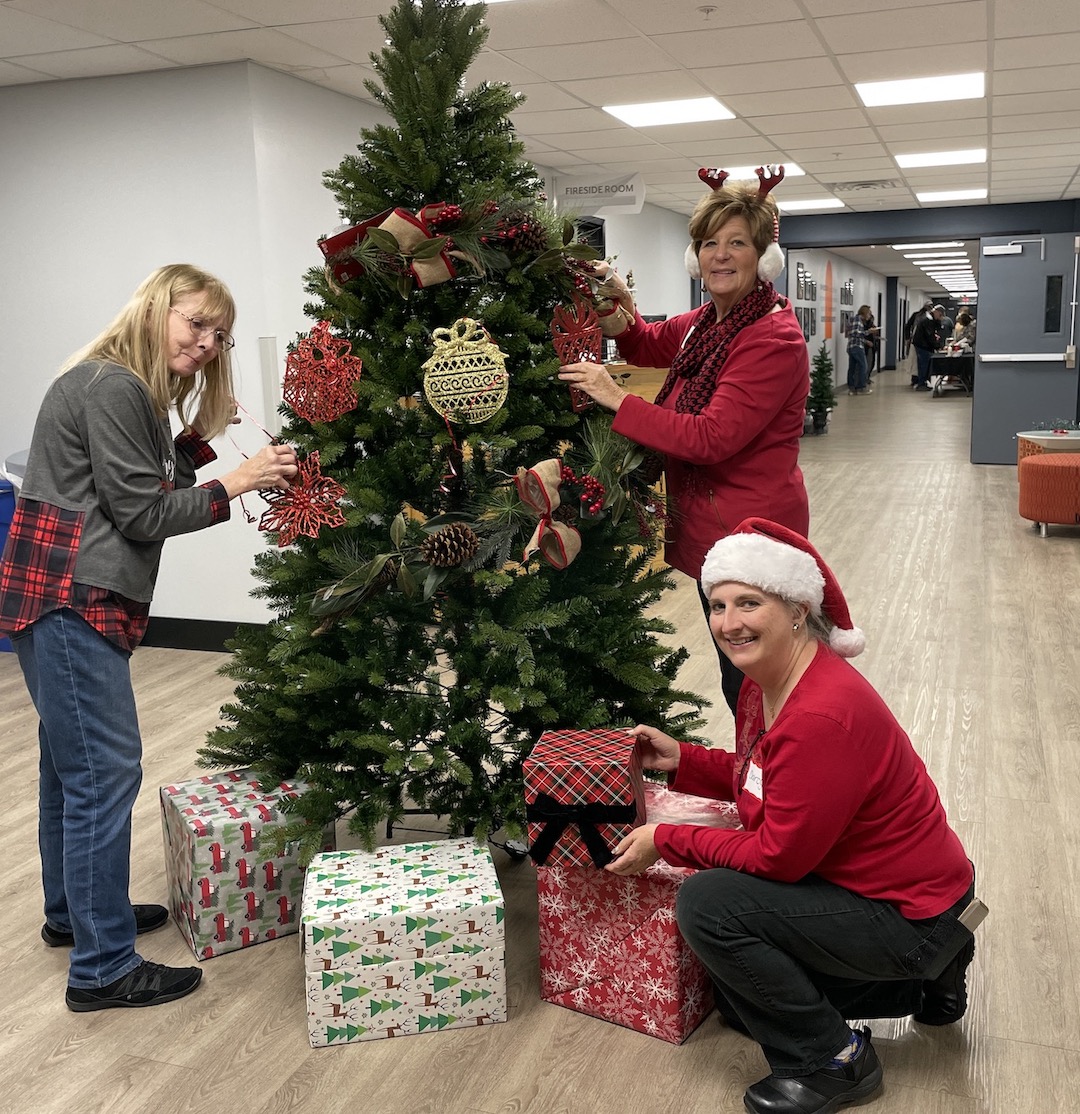 Pictured with one of The Chapel's Christmas trees are: Judy Resnick, Angela Rupple and Darcy Fesmire.
