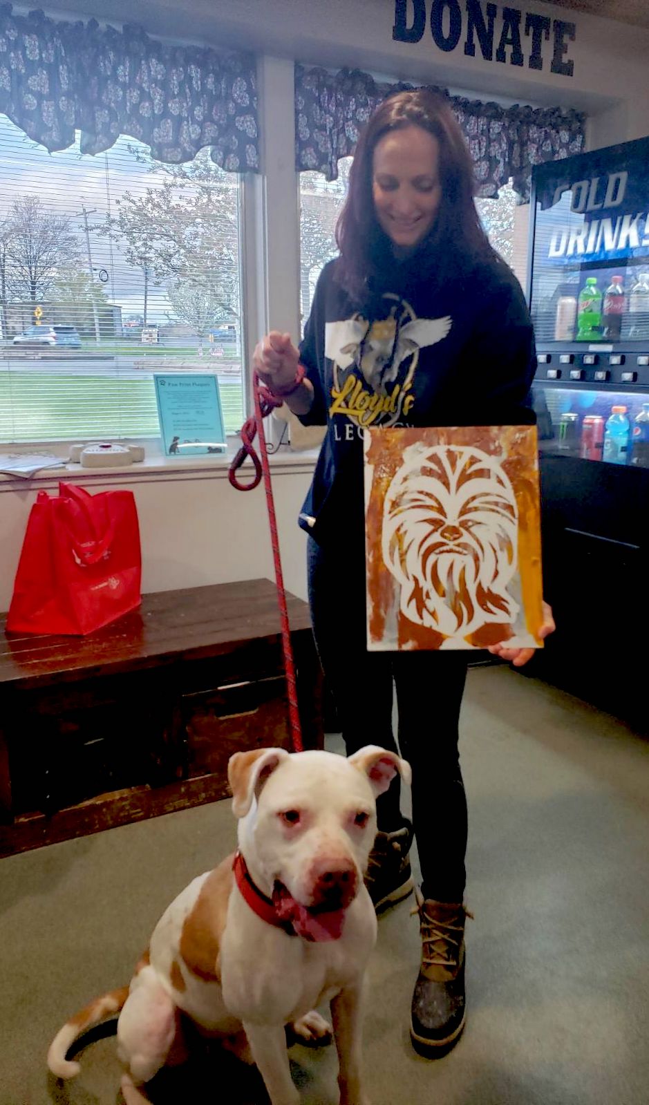 Rocco with Niagara SPCA volunteer Rachel Dunn, showing his Chewbacca painting. (Submitted)