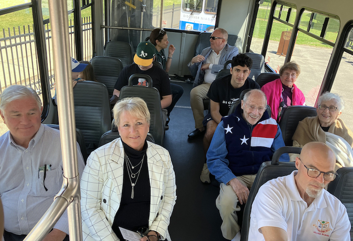 From left: Niagara County Legislator Irene Myers and family of Polly King hop on the Discover Niagara Shuttle. (Photo by Elijah Robinson)