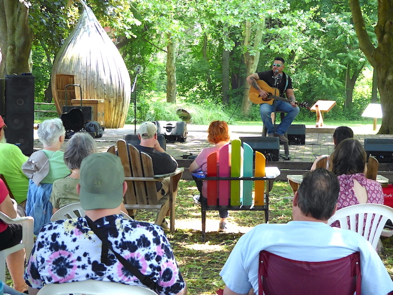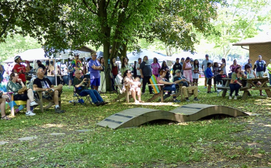 The event was held in the area in and adjacent to Emerald Grove, across the lower park green space overlooking the Niagara River, and up to the Native American Peace Garden. Patrons could shop at a festival marketplace, learn about Indigenous culture, and watch myriad musical and dance presentations. Later in the evening, performances moved to the “Niagara 1979” “Painted Parking Lot.”