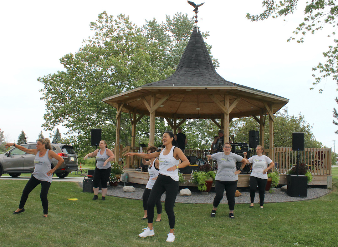 Before the band took the stage, the Grand Island Recreation Dancers were a crowd-pleaser Tuesday night, under the direction of Shirley Bittlingmaier of Lunadance. The grownups went first with an energetic Zumba-oriented performance, followed by a trio of talented girls in pink and black dance costumes.