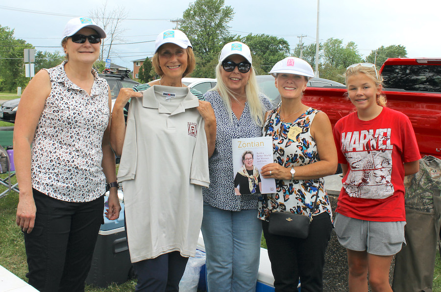 Zonta Club of Grand Island members sell snacks at the Zonta Club “Snack Stand” at the kickoff to the town’s “Tuesday Night Summer Concert Series, which runs through Aug. 15. From left, they are: Donna Monaco, President Ricki Harper, Heidi Anne Travagline, Wendi Delaney Wilson and her daughter.