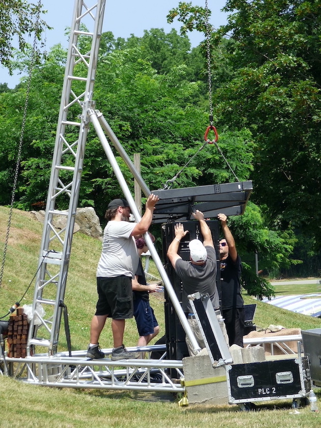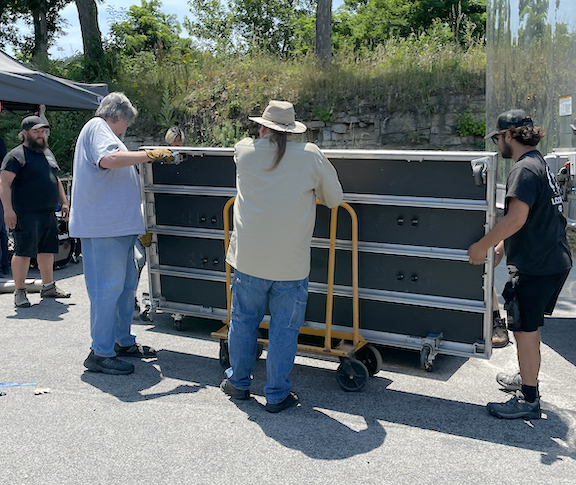 “There's a lot that goes into it before the band shows up on the day of the concert,” carpenter and steward Jack Wrobel said the night of the BNL concert. Taking a moment to chat as one of the largest events of the season (7,000-plus tickets sold) was underway, the 48-year team member said, “What goes into it for us the day of the concert is the trucks roll in. It could be from one truck, it could be a bus with a trailer on the back of it, full of equipment. It could be up to three or four trucks sometimes; and the crew is appropriately sized, per the requirements from the road crew and their whole production team. They figure out how much local help they need. That will add to the people that travel with them, the roadies that travel with them.