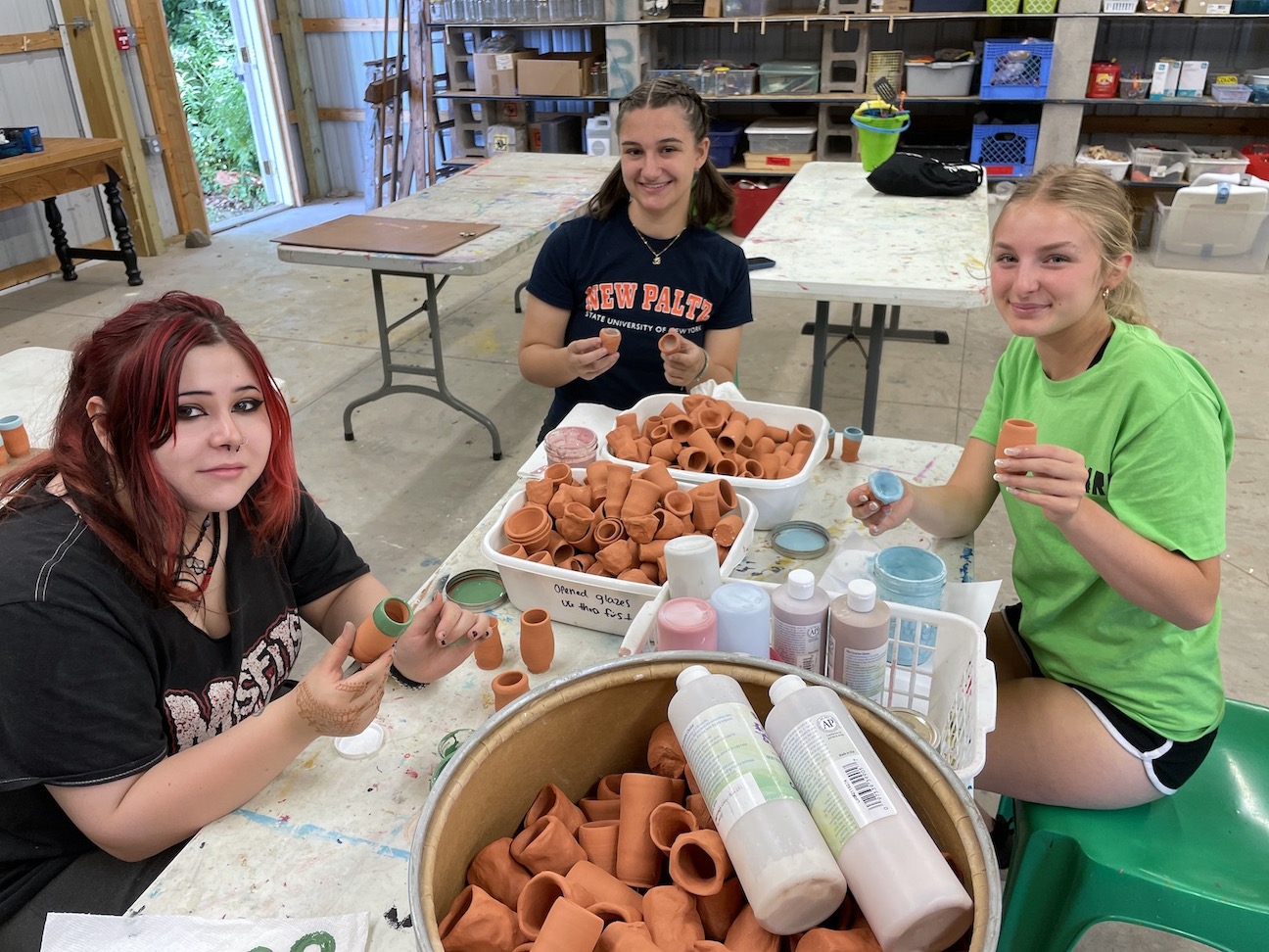 “Both of these programs utilize spaces that are winter storage. Wildlife tends to find refuge in these spaces and can create a bit of a mess. Every season, we spend at least a week or two cleaning out these spaces and rebuilding any furniture or support that is needed to make the programming possible. We recover the ceramic tables with canvas, grease the ball bearings on the pottery wheels, move 2,000 pounds of clay, and unpack multiple carloads of art materials.