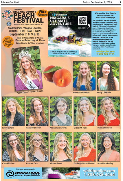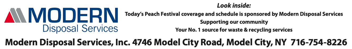 The 2023 Niagara County Peach Festival is presented by the Kiwanis Club of Lewiston, Modern Disposal, WGRZ-TV, “97 Rock,” Niagara County, Niagara County Community College and Tim Hortons CRB Holdings. More information and a schedule can be found at www.niagaracountypeachfestival.org.