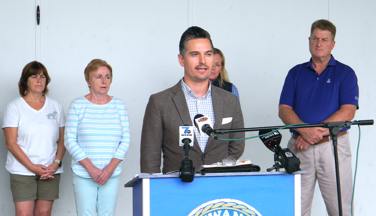 Kiwanians Marty Pauly and Jerry Gismondi address the media. (Photos by Terry Duffy)