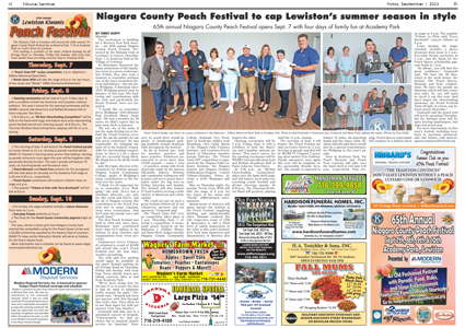The Kiwanis Club of Lewiston will present the 65th annual Niagara County Peach Festival the weekend of Sept. 7-10 at Academy Park on Center Street in Lewiston. The first Peach Festival was held in 1958 and, since then, Kiwanians have contributed more than $1.6 million in donations to area charities and organizations from event proceeds.