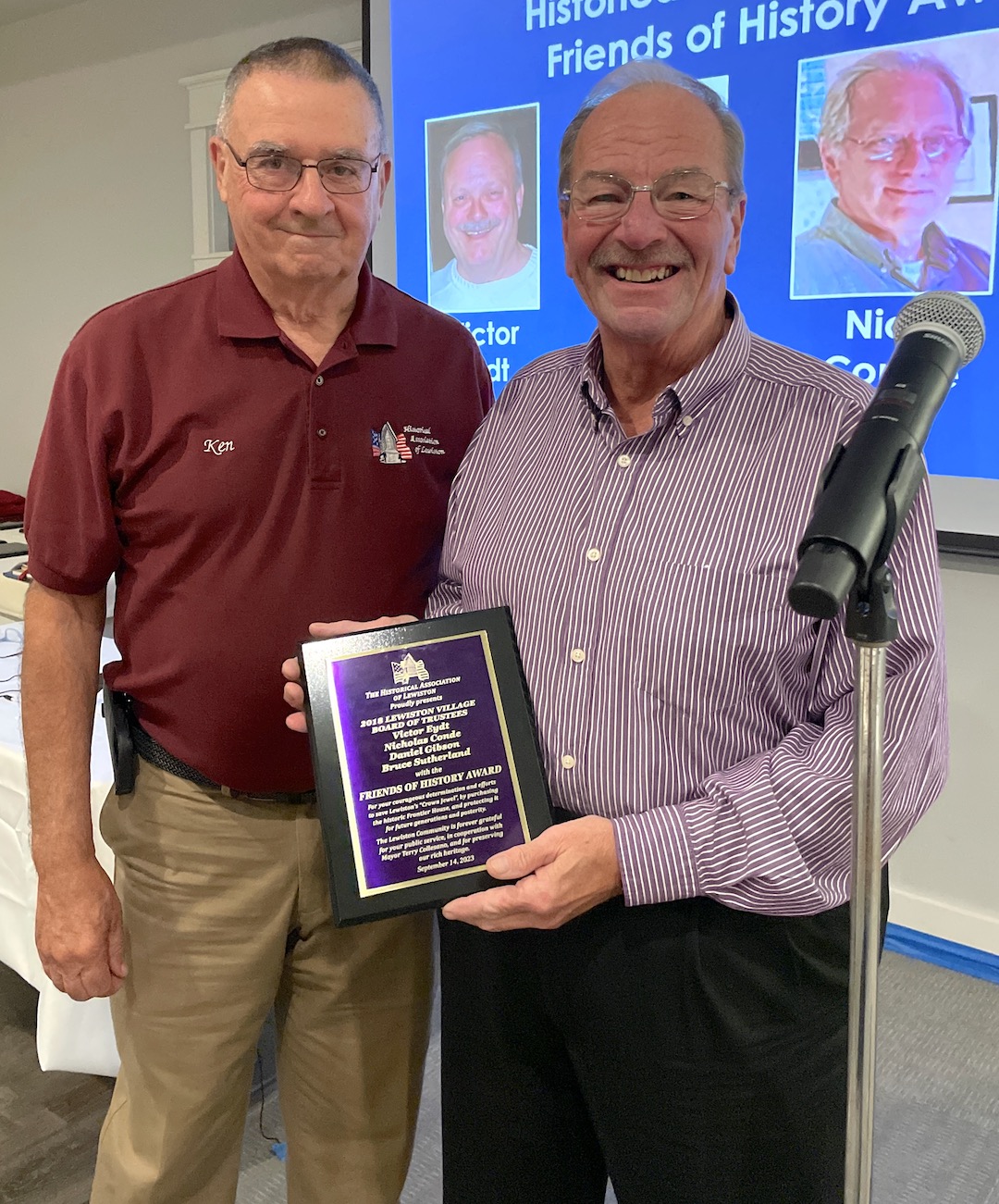•Village of Lewiston Historian Russell Piper was the recipient of the Bruce Sutherland Outstanding Contribution Award for his stewardship of the Village of Lewiston cemetery located next to the First Presbyterian Church. Piper could not attend.