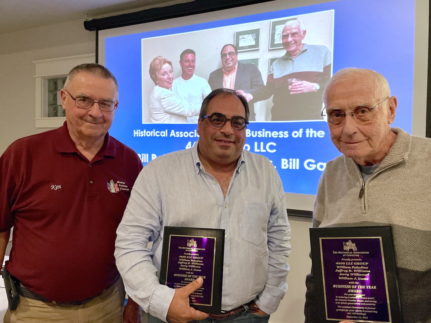 Special recognition went to the individuals responsible for the 2018-19 sale of the Frontier House from Hastings Lewiston to 4600 LLC Group (Bill Paladino/Ellicott Development, Lewiston residents Jeffrey Williams and Jerry Williams, and William Game), as facilitated by the Village of Lewiston Board of Trustees and counsel Joseph Leone Jr.
