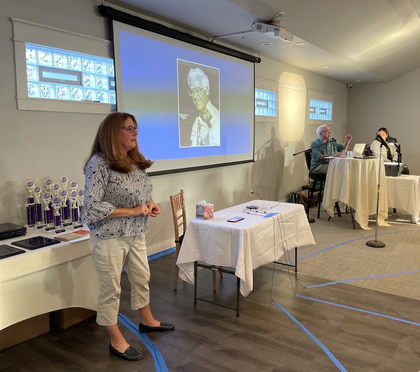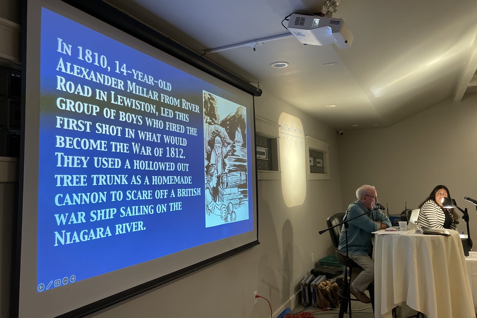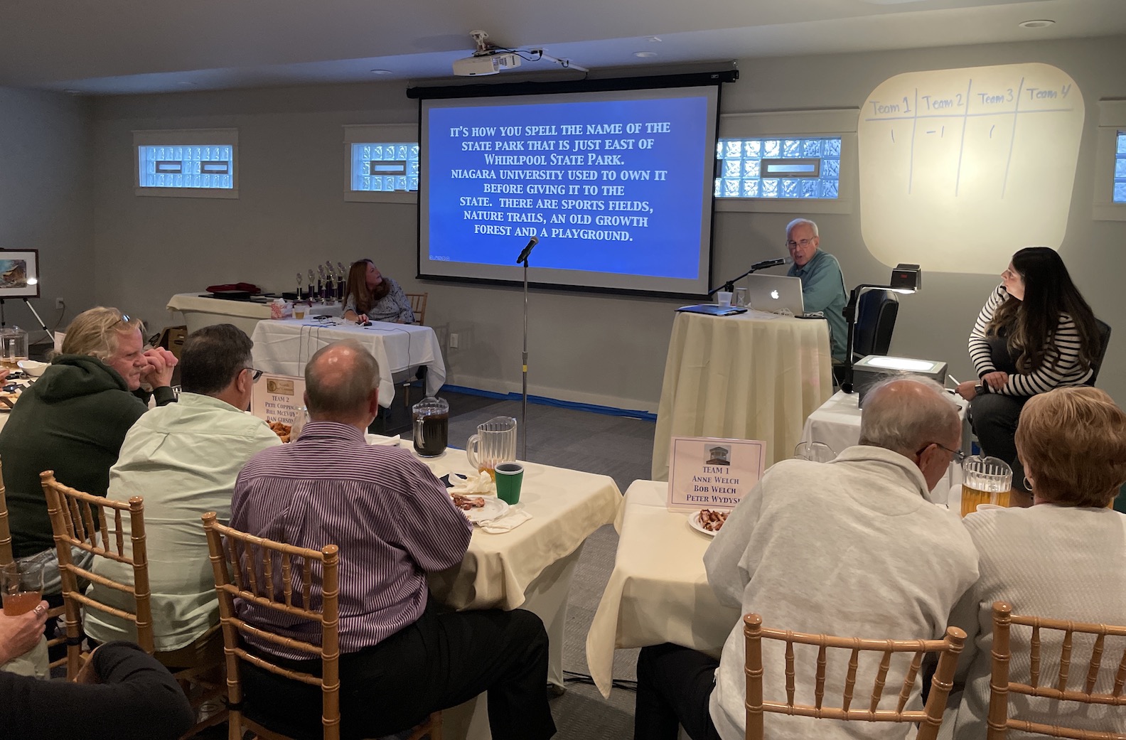 Four teams of local history experts competed for bragging rights and trophies – team one: Mayor Anne Welch, husband Bob Welch, and Niagara County Assistant District Attorney Peter Wydysh; team two: Peter Coppins, Trustee Daniel Gibson and Bill McEvoy; team three: Curt Stuart, Michael Vitch and Lisa Lannon; and team four, which won: Sandy Blackwell Yates, Ralph Borelli and Tim Miller.