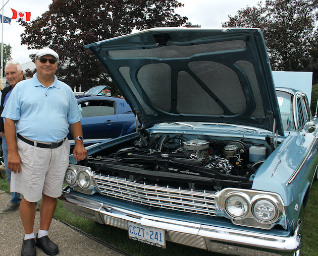 Mike Colavecchia displays his 1962 Chevrolet Impala in the vintage car section of the Antique and Classic Boat Show on Saturday at the Buffalo Launch Club.