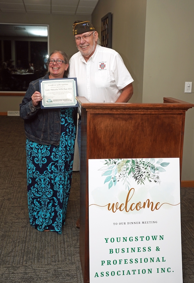Presenting the YBPA honor to Jackson, Kudel said, “For the ongoing achievement of over 75 years, for outstanding veterans and support and community service in the Village of Youngstown. Thank you, veterans, VFW Post 313.”