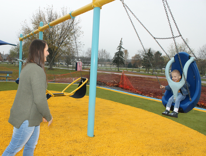 She explained, “This is needed and it’s just the beginning. We’re hoping to get an accessible pavilion and pickleball courts – so it’s just a start to make sure we include kids with disabilities. I love seeing the kids finally play on it.”