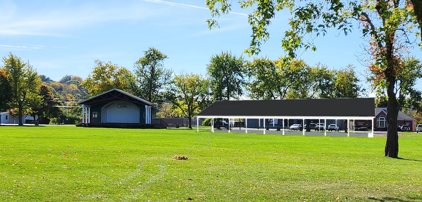 He acknowledged a pavilion would benefit Tops by bringing more people to the village and to the park, specifically, but also “it’s multiuse. You could use it for the Peach (Festival) tent. You could use it for Wine Fest. You could use it for the philharmonic. You could use it for ‘Summer of ’69.’ You could use it for the farmers market. You could use it for a skating rink (warming area).”