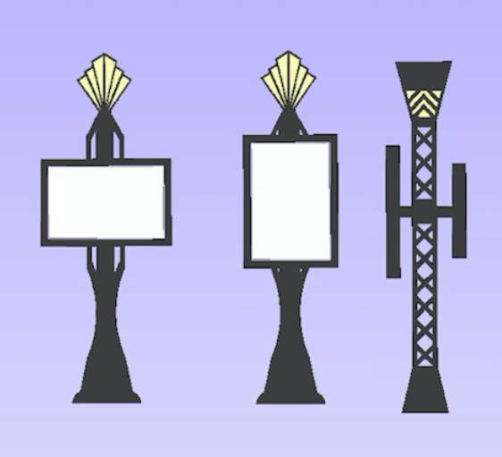 With regard to the latter, metal art fabricator Dan Buttery said each frame would be installed into its own concrete base. He spoke of encircling each foundation with brick or greenery.