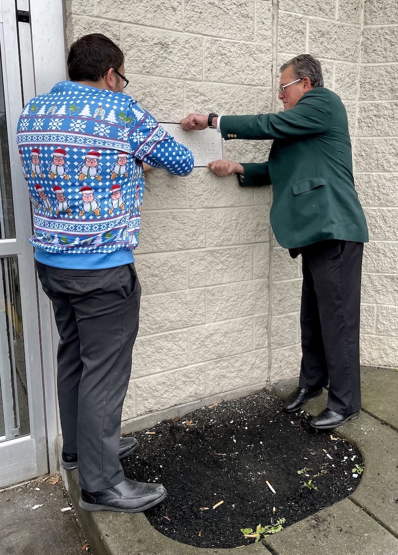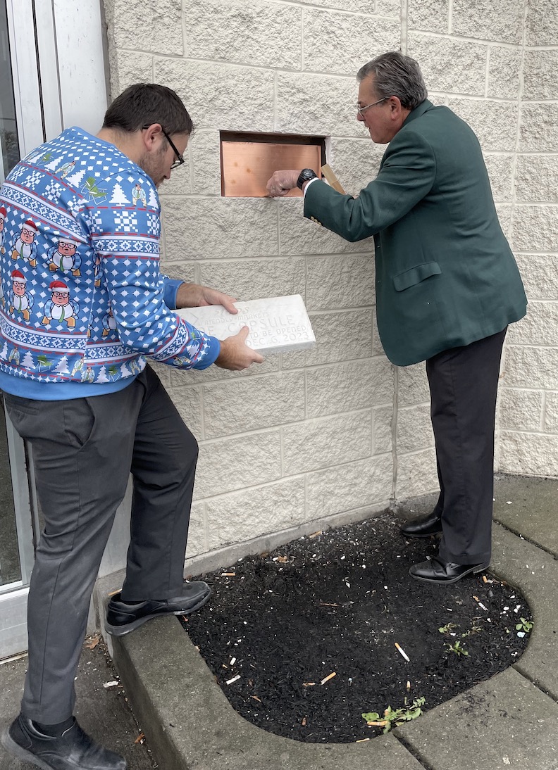 A quarter-century ago, a box was placed into the right exterior wall next to the west entrance. It was inscribed: “Sealed Dec. 6, 1998. To be opened Dec. 6, 2023.”