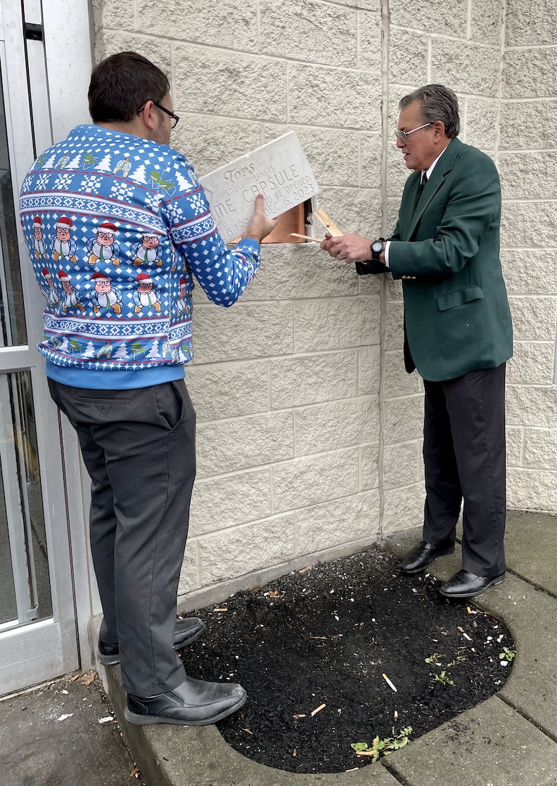 DiMino’s Lewiston Tops owner Anthony DiMino and his son, John DiMino, the store manager, opened a time capsule on Saturday to celebrate the 25th anniversary of their family building the current, larger supermarket.