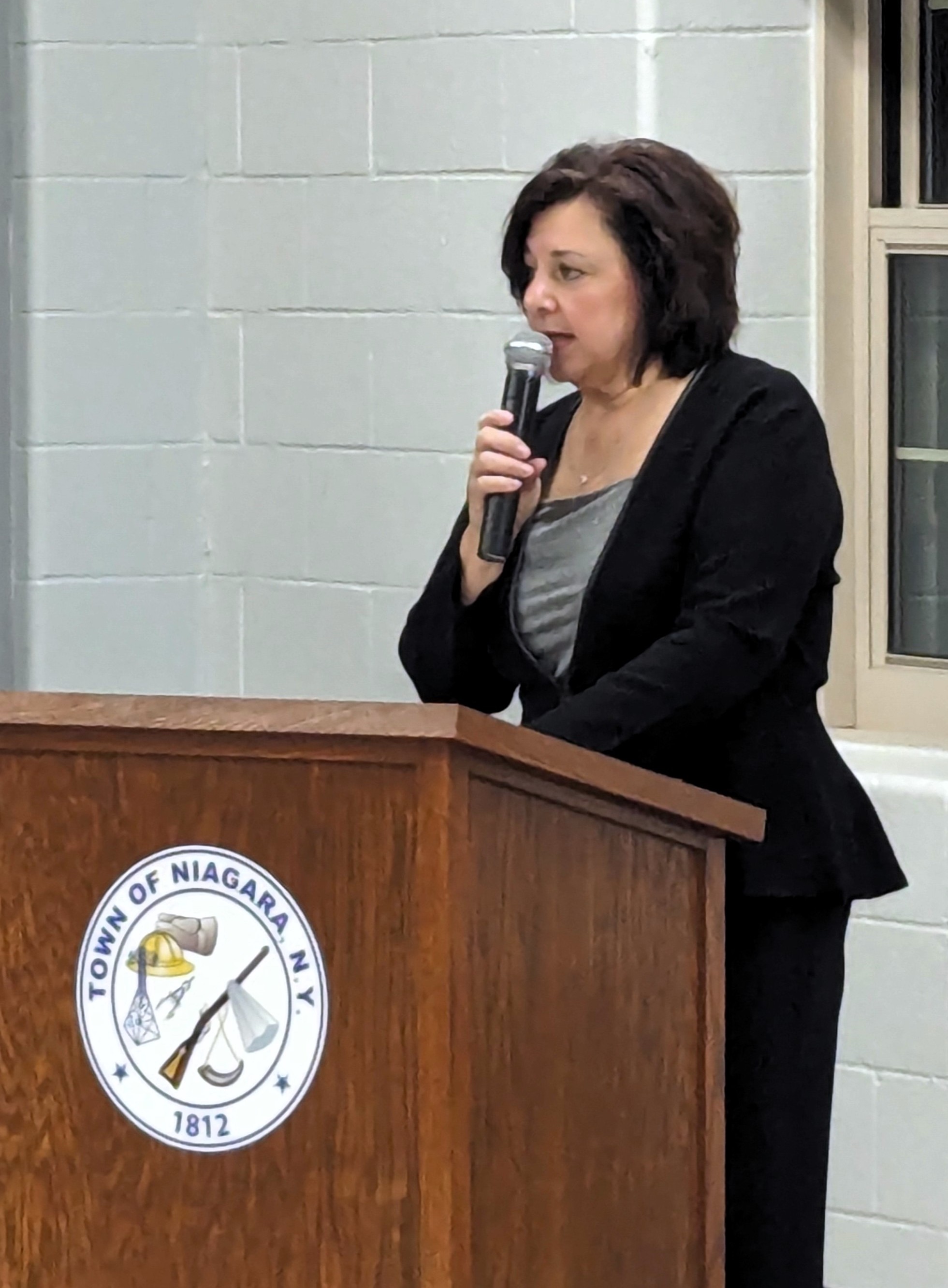 New Town of Niagara Supervisor Sylvia Virtuoso addresses the crowd.