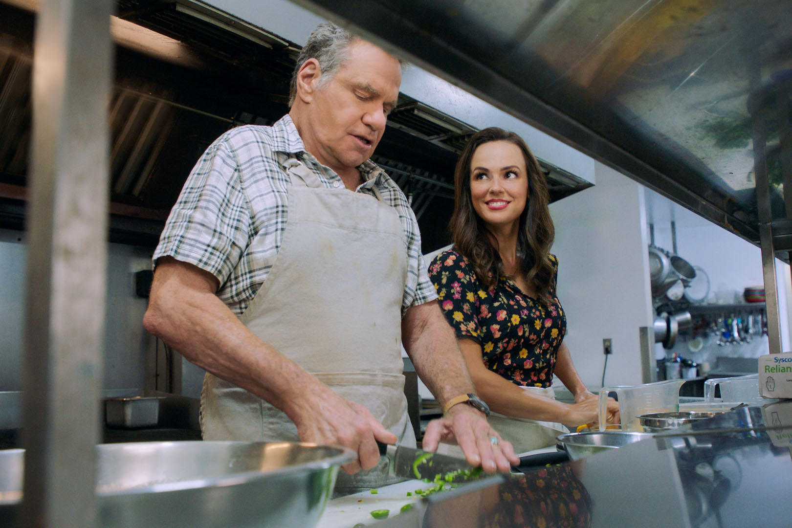Martin Kove play’s Erin Cahill’s chef father in “A Taste of Love” on the Hallmark Channel. (Credit: ©2024 Hallmark Media/photographer: Courtesy Digital Caviar)