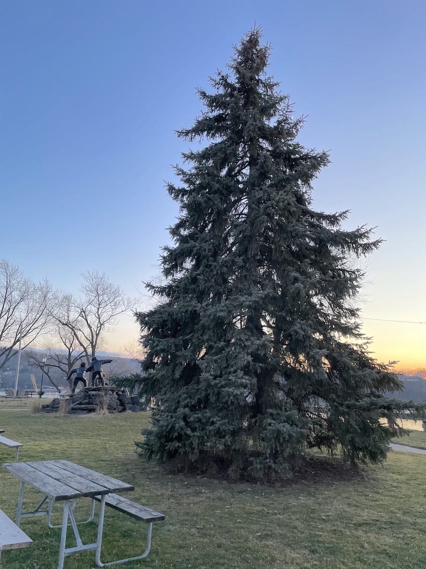 Last week, Welch said, “The Beautification Commission asked if we could take (the spruce) down, because they want to redo the park. It's overgrown … it's got sharp needles; so, it's not real park-friendly. … It blocks the view of the Freedom Crossing monument, the view of the river. It's getting too tall to really take care of it.”