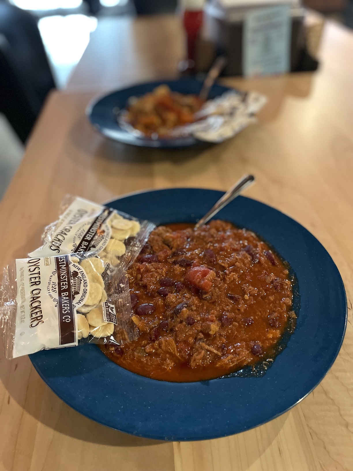 For the chili, meanwhile, “We use a ground pork and beef blend, and we also use our house-smoked pulled pork in it, as well. Kidney beans and all the other classic chili favorites.”