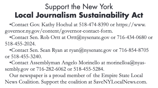 We need your help to save local news in New York. To get the Local Journalism Sustainability Act across the finish line, lawmakers need to hear from you about why our newspaper matters and why this bill is important to you. If you would like to help, reach out to Gov. Hochul and your local representatives to let them know you stand with local news.