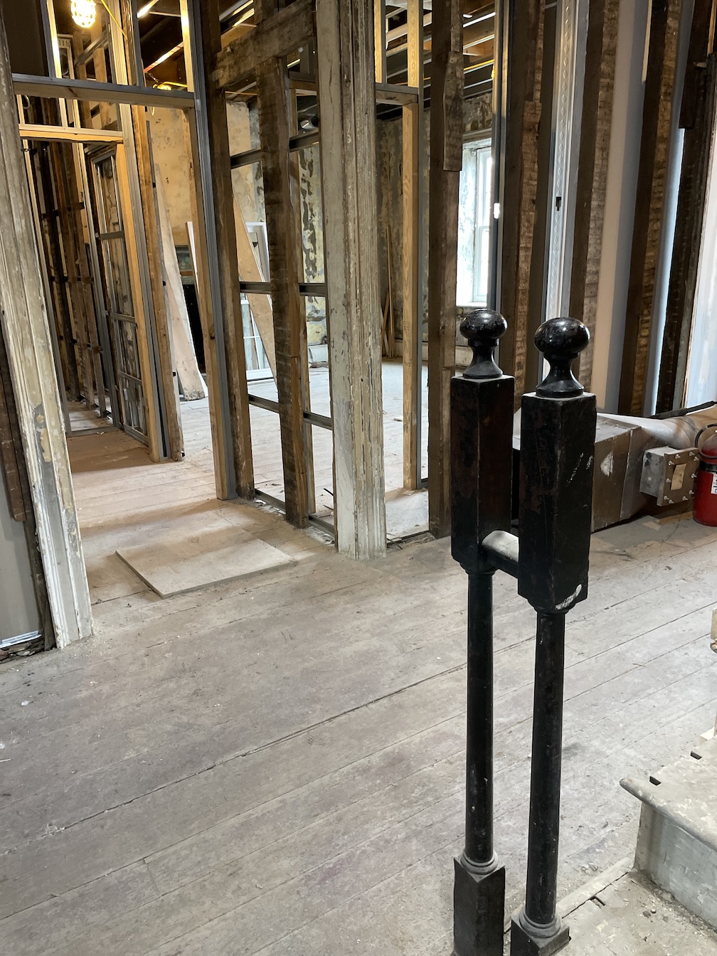 Custom railings are being made to match the historic balustrades, and will be seen with each level’s staircase.