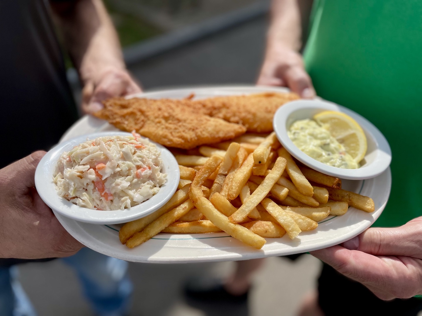 • Elizabeth M.: “Beer batter is very crispy and huge! The best.”