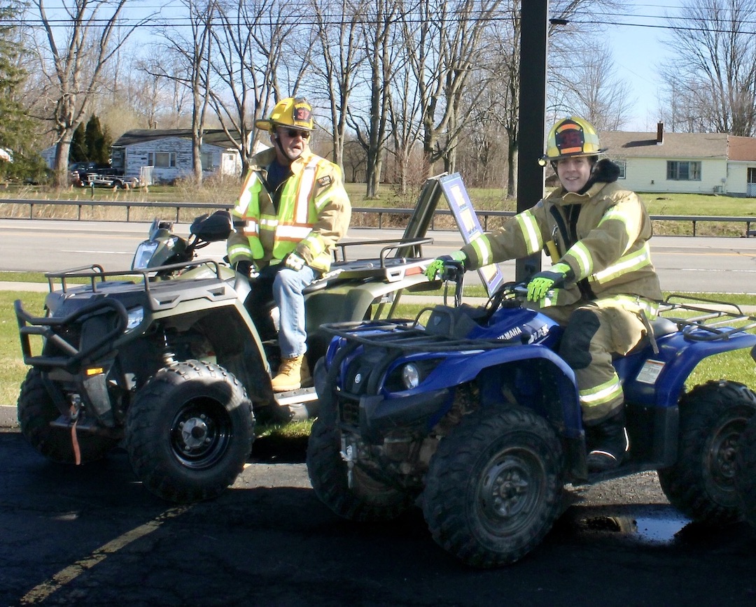 Getting ready to move out on their loaned off-road vehicles are Adams Fire Co. firefighters Bill Nalbone and Brendon Lauer. The ATVs and side-by-sides were available on loan from Bob Weaver Motorsports & Marine Inc, 3400 Niagara Falls Blvd., North Tonawanda.