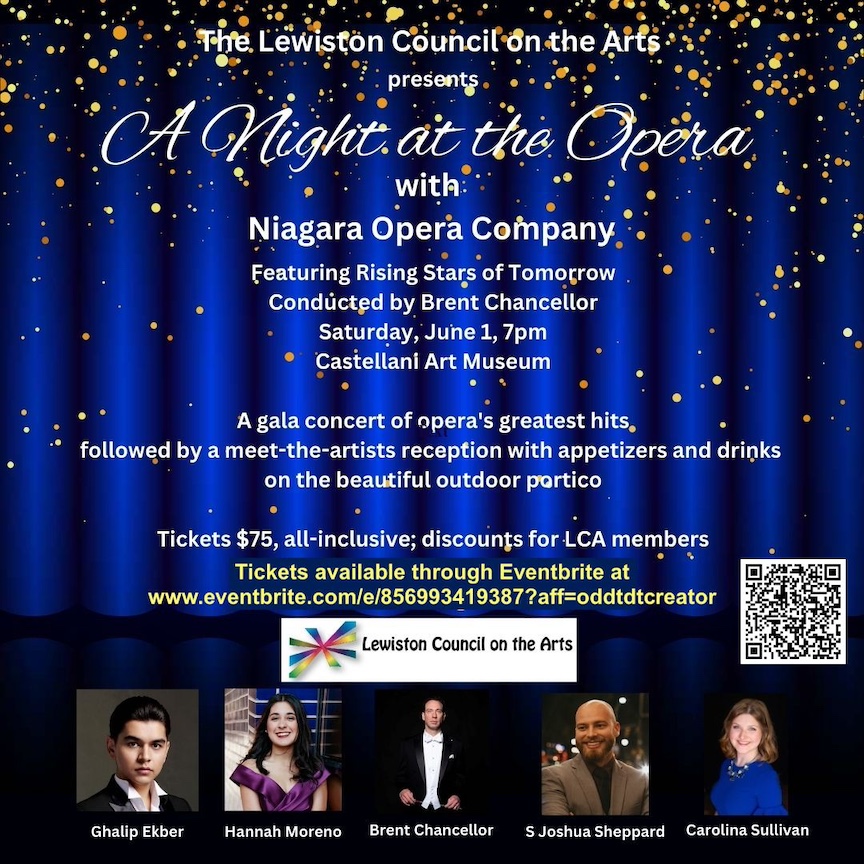 The Lewiston Council on the Arts will present “A Night at the Opera” with Niagara Opera Company and featuring Rising Stars of Tomorrow. The event will take place at 7 p.m. Saturday, June 1, at the Castellani Art Museum on the Niagara University campus.
