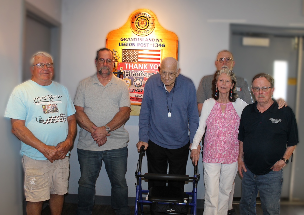 Some members of the group planning the Mary Dunbar-Daluisio Memorial Lawnmower & RC Car Race gathered at the Moose Lodge to discuss the event taking place from 9 a.m. to 3 p.m. Sunday, June 16, at 3957 West River Parkway at Long Road. From left (front row) are: Gary Roesch, Ron Hendel, Floyd Doring, Mary Ehde and Eric Berger; (back row): Mark Leffler. (Photo by Karen Carr Keefe)