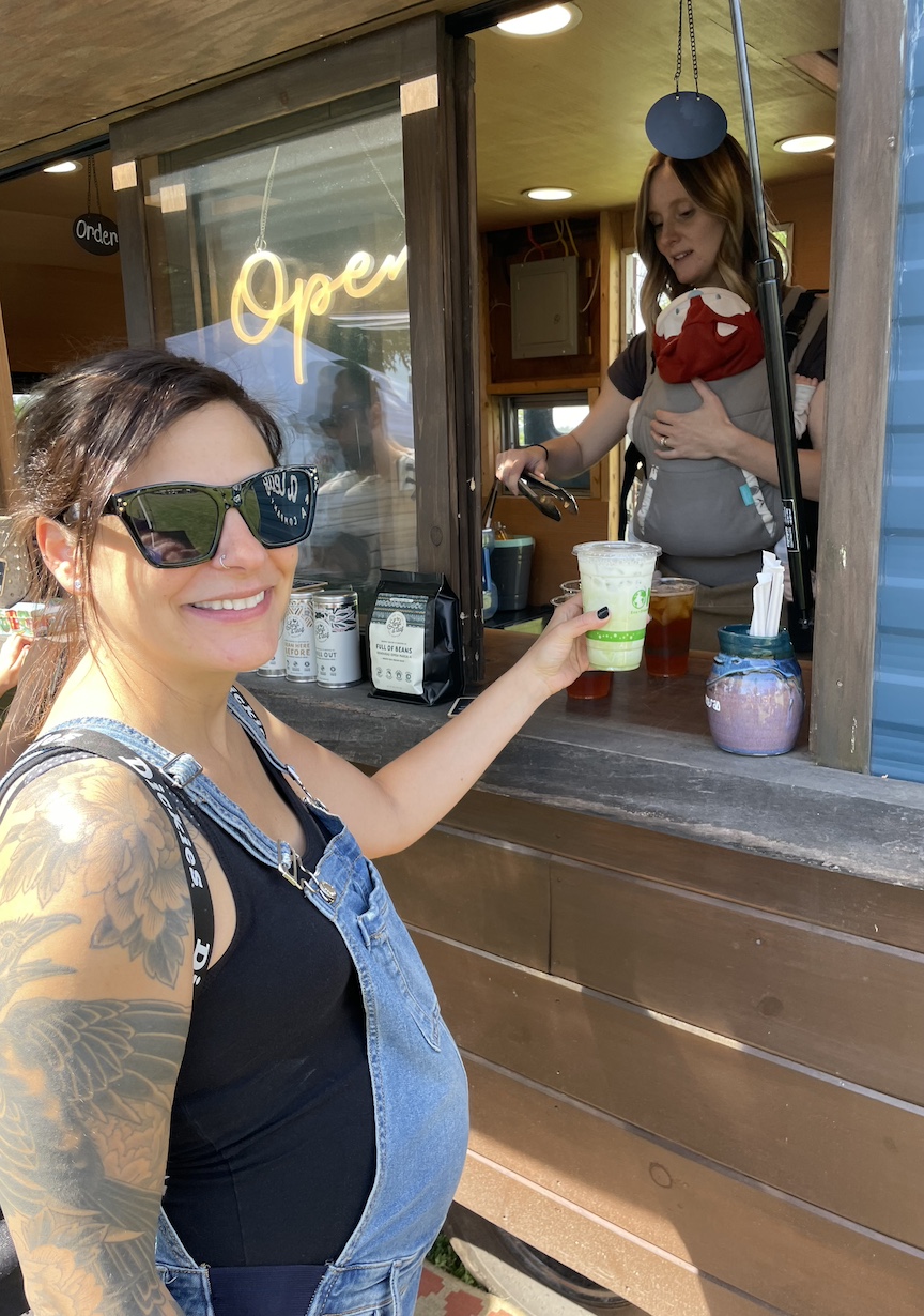 Jess Nyland (with Winry) prepares a Lend a Leaf Tea Co. iced matcha for Jessica Budde of Brewed and Bottled Craft Beer Shop.