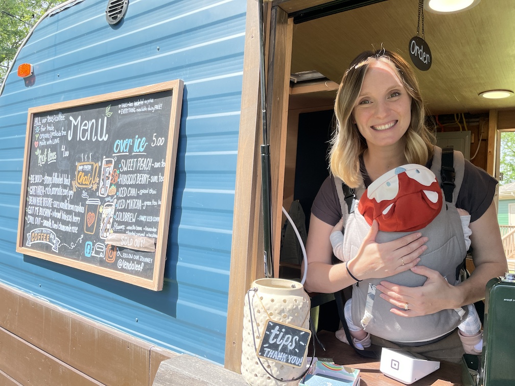 Brittney Knowles of Pressing Matter with her youngest patron.