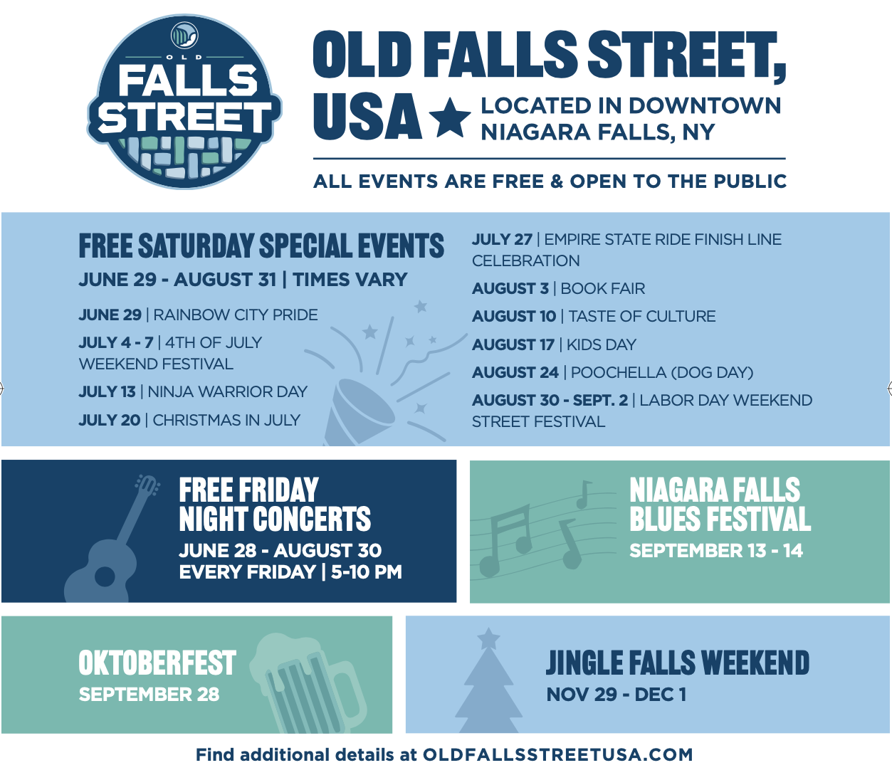 Visit https://www.niagarafallsstatepark.com/ for schedules and more information.