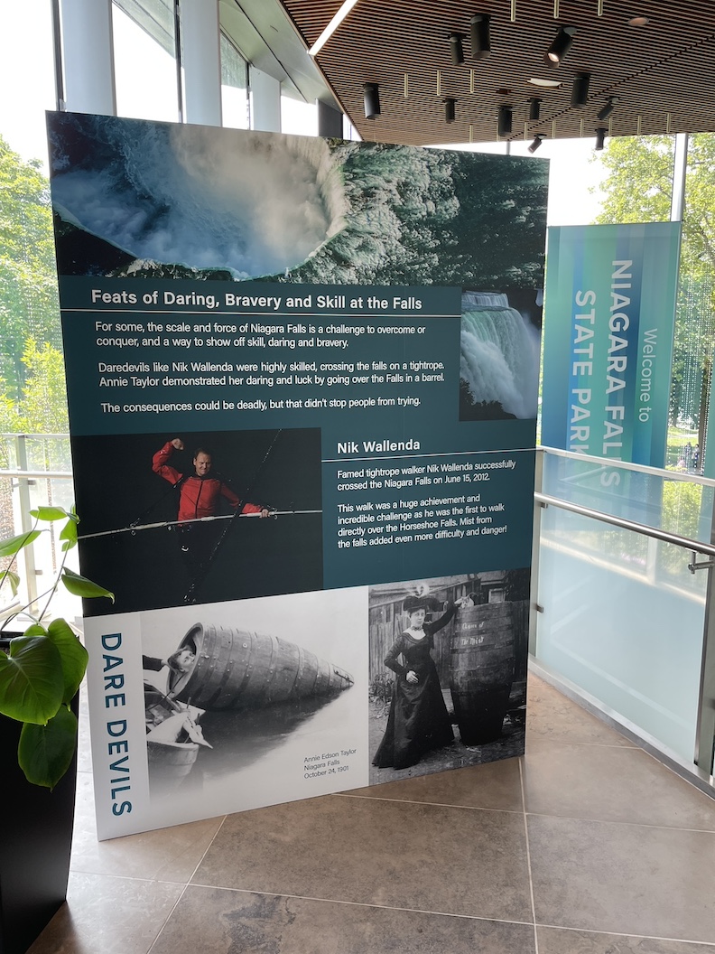 Toward the interior staircase, there is a temporary exhibit on some of the falls’ most (in)famous explorers. “This will be a whole corner about the daredevils. There's a piece of Nik (Wallenda’s) wire that will be on display,” Berti said.
