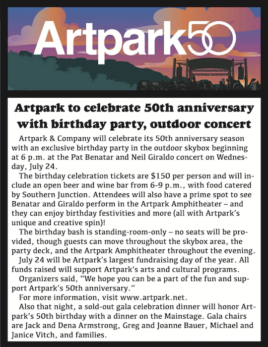 Artpark & Company Interim President Dave Wedekindt said, “Pat Benatar and Neil Giraldo are one of rock’s true power couples. They still perform at a high level and make every show unforgettable. They’ve also greatly enjoyed performing at Artpark over the years and are excited to return for our birthday celebration."