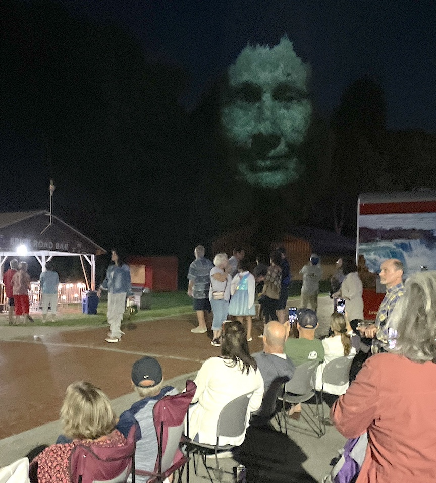 Finally, when the sun set, Craig Walsh’s “Monuments” appeared in the trees lining the outdoor venue. This temporary multimedia installation, created by acclaimed Australian artist Walsh, places moving, digitally mapped faces and expressions of nine of Artpark & Company’s “unsung heroes.”