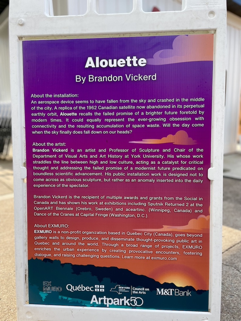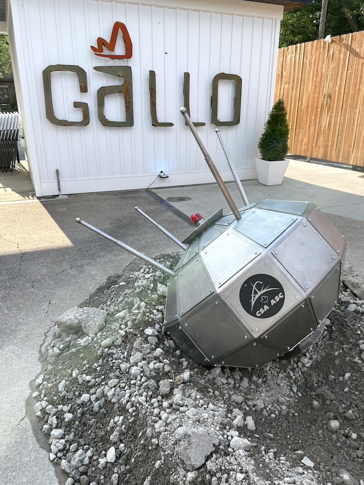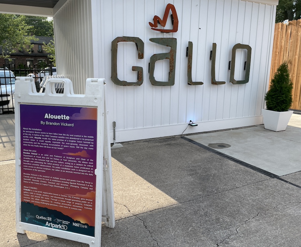 Artpark & Company partnered with Gallo Coal Fire Kitchen to unveil a 1962 replica of a Canadian satellite that appears to have “crash-landed” inside the courtyard of the restaurant at Center and North Fourth streets. The “Alouette” art installation debuted Friday night and showcases the aerospace device as if it had fallen out of the sky and impacted the Earth. It was created by Brandon Vickerd and will be on public display through Aug. 21.