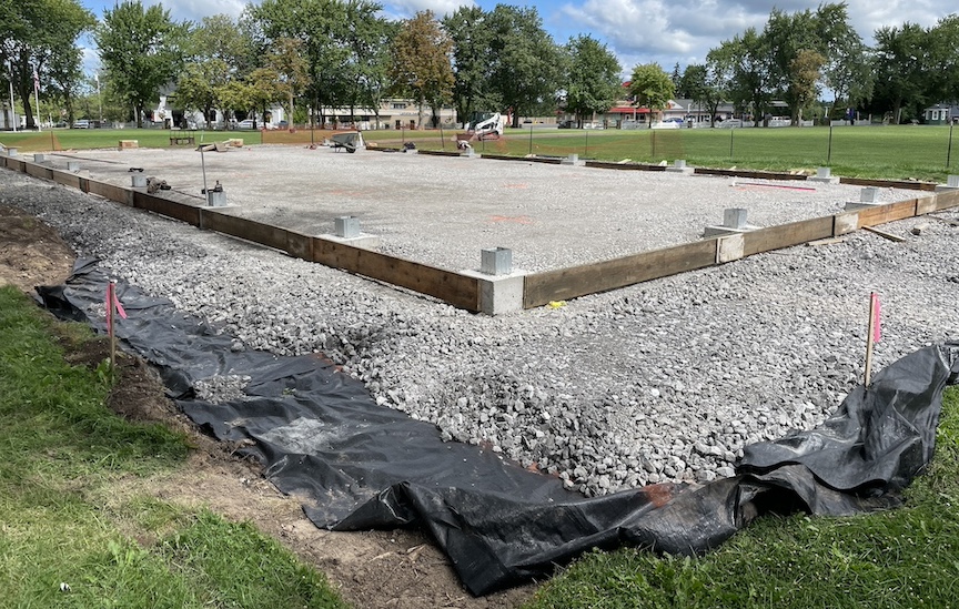 •Construction is underway on a new pavilion to be located next to the Alphonso I. DiMino Memorial Bandshell in Academy Park.