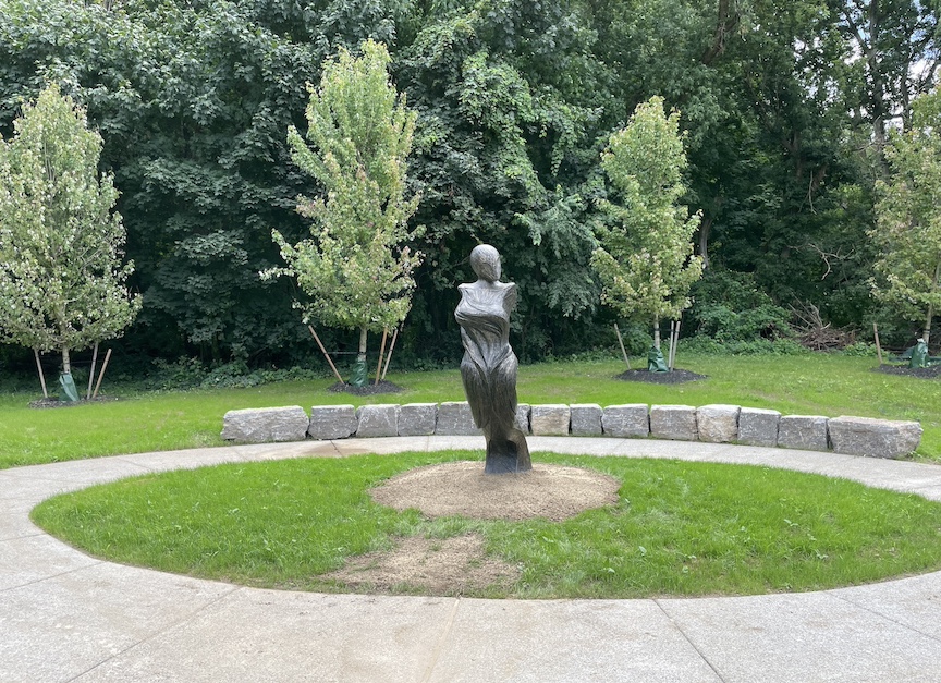 •Work is nearing completion on a new courtyard outside of the South Fourth Street entrance to Artpark. The garden’s centerpiece is bronze statue created by Julie Silver and donated to the Village of Lewiston by the Williams family.