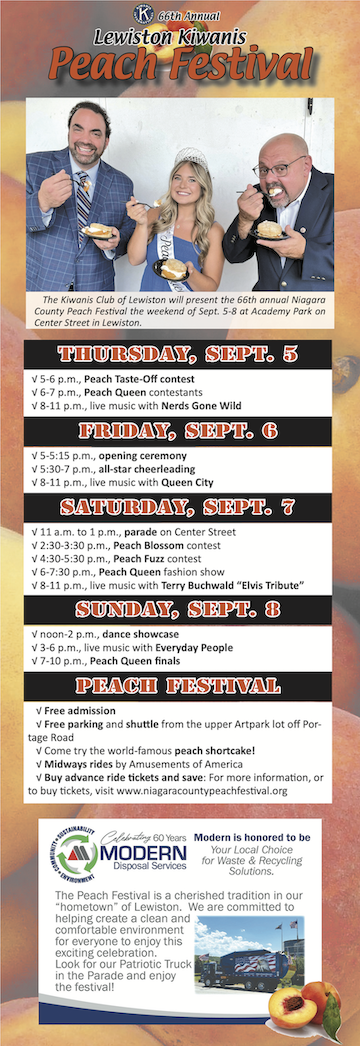 The excitement is building in Lewiston as the 66th annual Niagara County Peach Festival returns to Academy Park the weekend of Sept. 5-8.