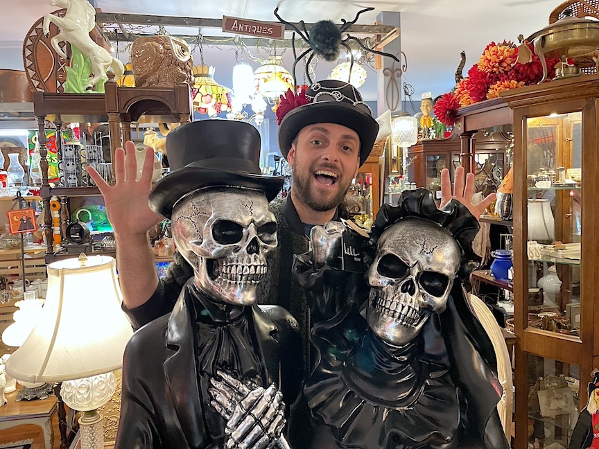 Lewiston Estates & Antiques owner Richie Pysz is co-organizing this year’s “Trick-or-Treat on Center Street.” Inside his store at 621 Center St., “We have a lot of cool Halloween decorations. We actually have an 1800s-themed funeral parlor that we did up front, with an 1800s wicker casket and some really cool items to view.”