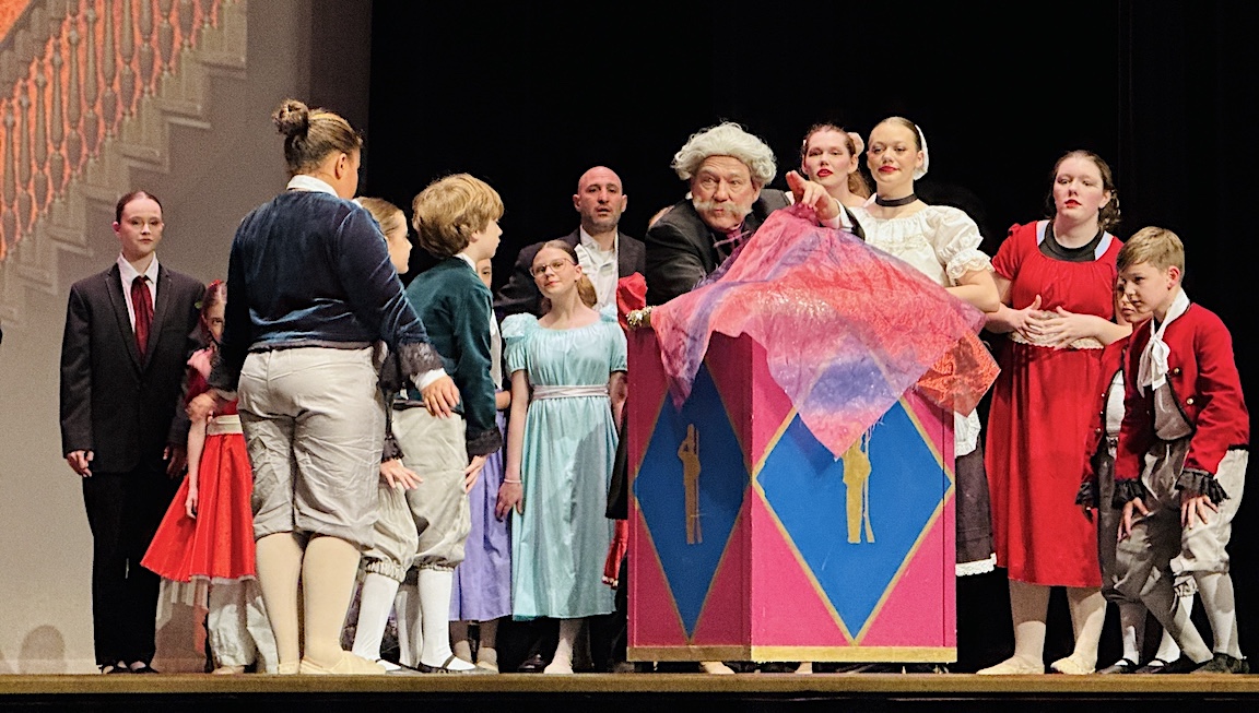 “We have to stay very organized,” Schnepf said. “We set a rehearsal schedule, we let the parents know – and the dancers know – when they have to be where at what time. And we have been very lucky that we have several rehearsal assistants. My assistant director, Mary Pappagallo, has been training some of the younger dancers to assist with the party scene, with battle scene, with angels, with bon-bons, and that has been very successful. The dancers have been wonderful about helping out. They really help us both out quite a bit.