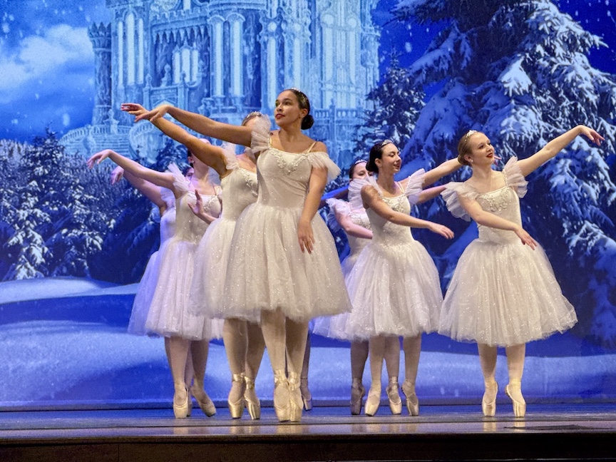 GNBC Vice President Diana Guerrucci said, “Our numbers certainly have been increasing the last four years. We have been making a very concerted effort to make all dancers in our area aware of all of our performances, with great support from the local dance studios. Our choreography has been going through changes each year, with our directors wanting each ‘Nutcracker’ year to be a little different. Our digital backdrops were first introduced to our show last year and were a big hit, especially during our on-school time performance of about 1,500 students.
