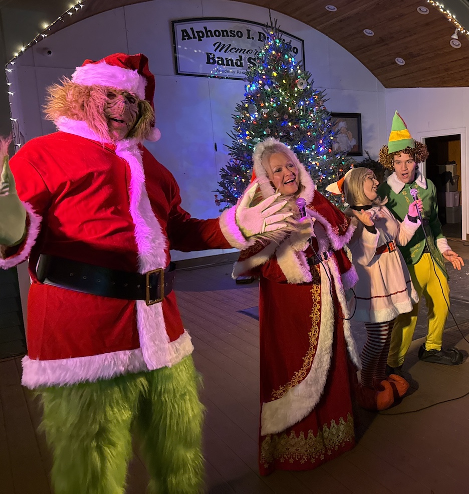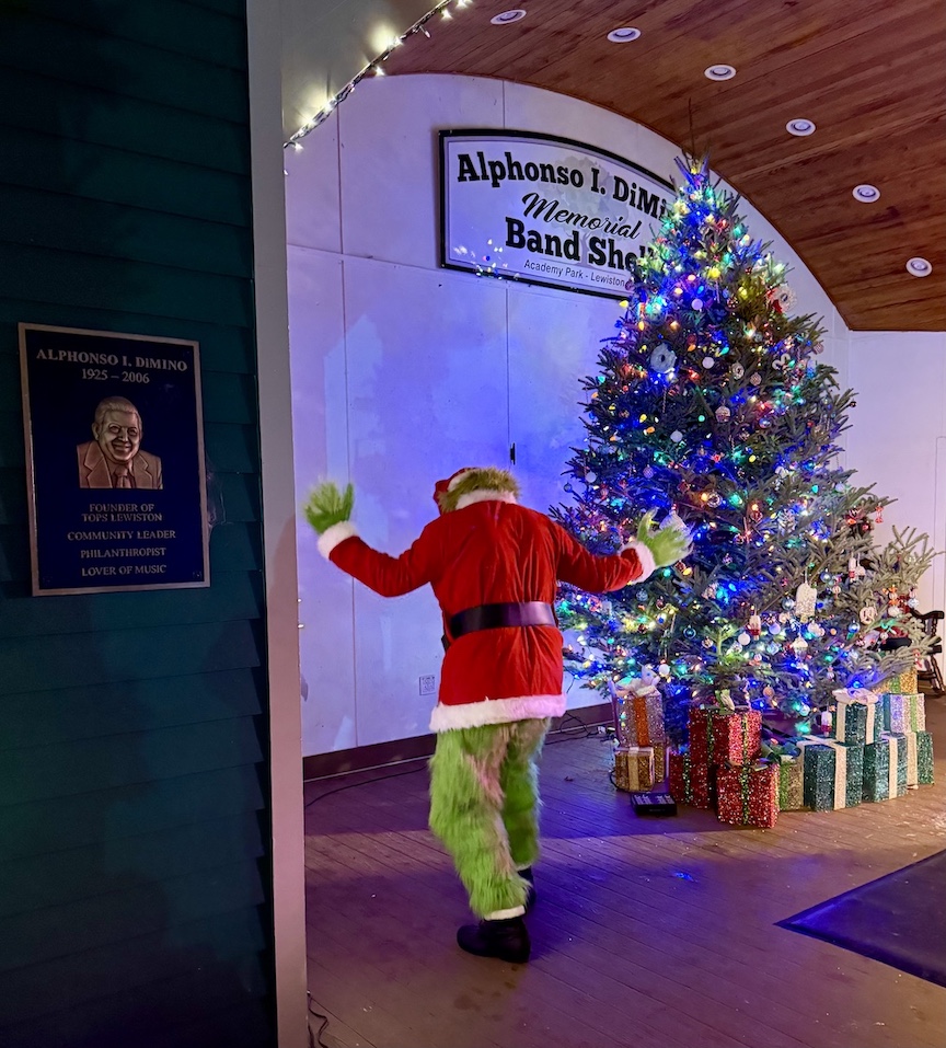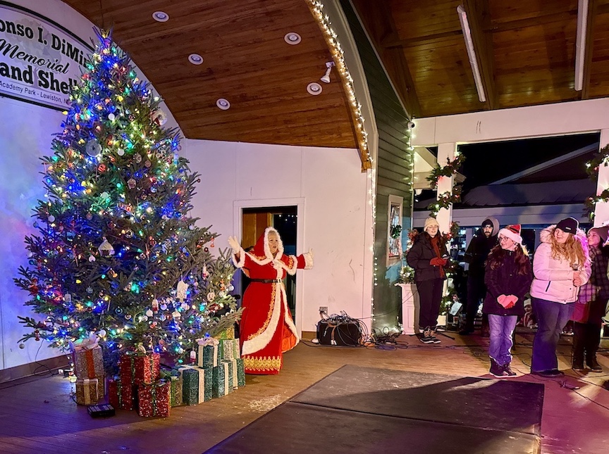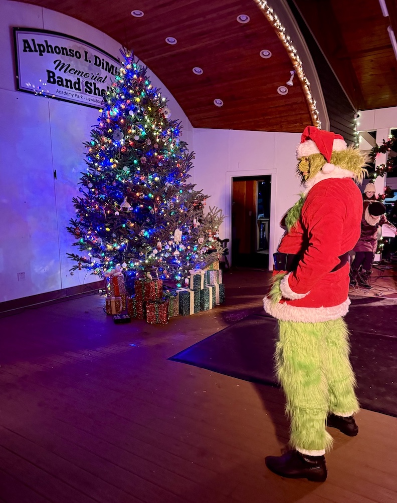 The Lewiston Council on the Arts and Lewiston Beautification Committee teamed to present the Christmas tree-lighting ceremony Friday at the Alphonso I. DiMino Memorial Band Shell in Academy Park. The 34th annual event included performances by the Greater Niagara Ballet Company, Lewiston Dance Center, Janet Dunstan Dance Academy, St. Peter's R.C. School choir with Ray Barry, and Teal's Niagara Theatre Vocal Dynamites, plus, a community sing-along, and special appearances by Mrs. Claus, the Grinch, Buddy the Elf and Jovie. (Photos by Joshua Maloni)
