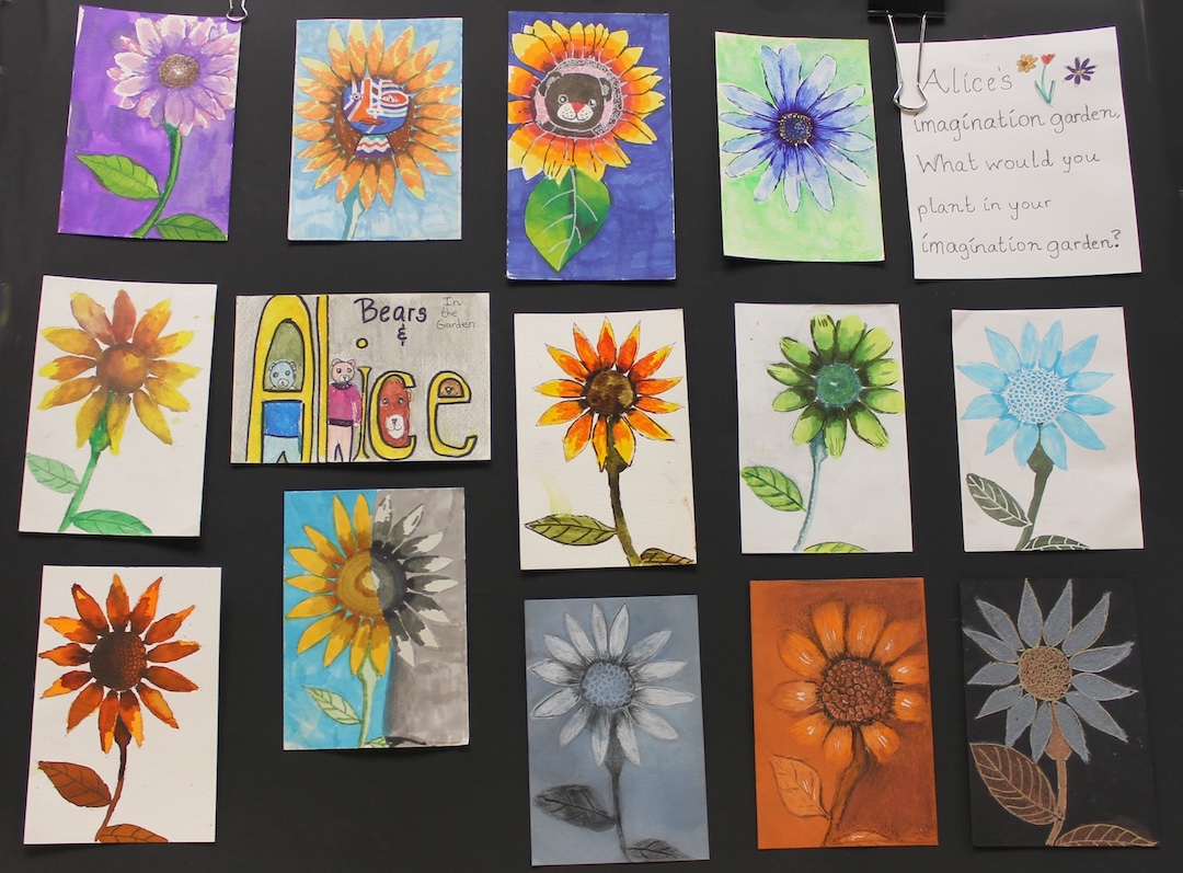 “The flowers look skyward toward the warmth of the sun; the ‘doodles’ represent pure imagination, which has no limits, even during a lockdown.