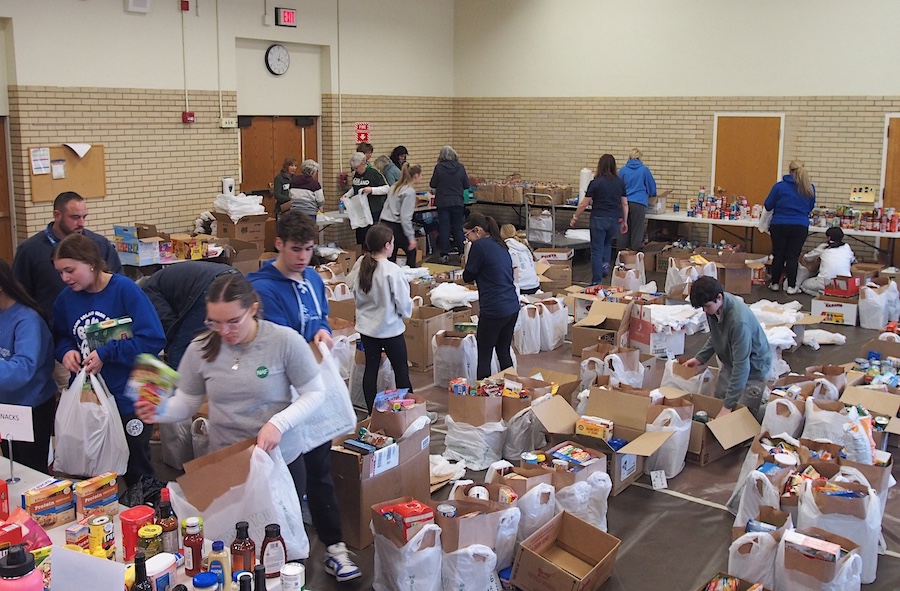 Students from Veronica Connor Middle School and Grand Island High School, along with teachers, put together donation bags for the Neighbors Foundation to distribute to Island families.