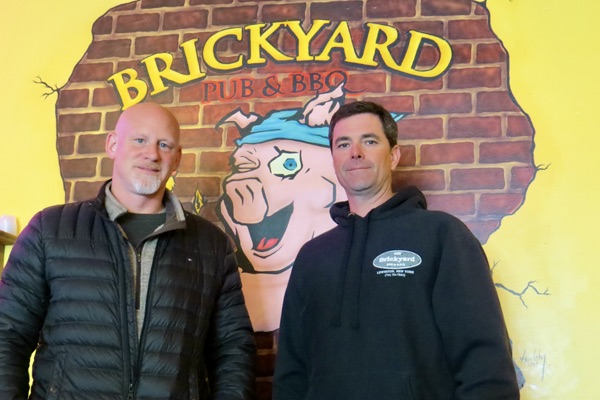 It’s fitting that, in the week the Brickyard Pub & BBQ celebrates its 20th anniversary, co-owner Eric Matthews is doing exactly what he was doing when the Lewiston restaurant first opened.