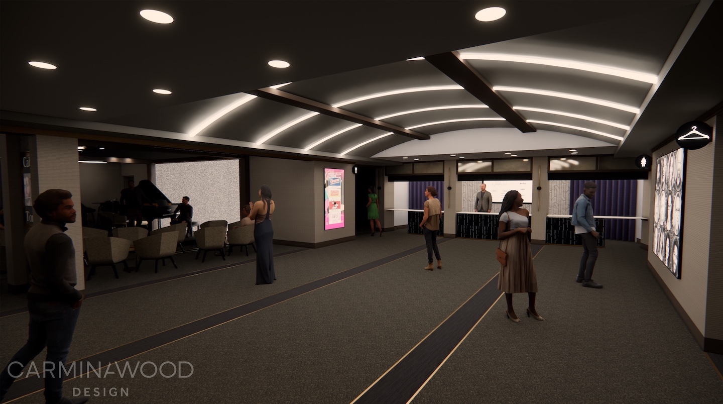 The proposed Shea’s 710 cabaret and lobby spaces. (Renderings by Carmina Wood Design // courtesy of Shea’s Performing Arts Center)